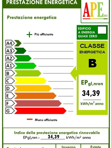 Ape: B EP gl,nren 34,39 kWh/mq anno