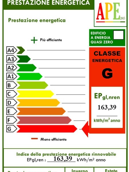 APE: G EP gl,nren 163,39 kWh/mq anno