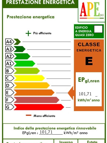 Classe energetica E EP gl,nren 101,71 kWh/mq anno