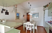 All'interno troviamo un ampio soggiorno con angolo cottura, due camere da letto e un bagno con finestra, il tutto arredato con gusto e dotato di infissi in vetro e legno.