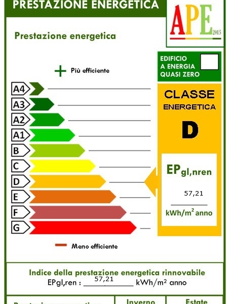 Ape: D EP gl,nren 57,21 kWh/mq anno