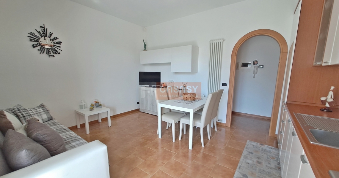 L'immobile si presenta pronto per essere abitato ed è composto da: ingresso, un luminoso soggiorno arredato, che offre spazio per un'area pranzo e relax, comodo angolo cottura, completamente equipaggiato, camera matrimoniale, camera singola, entrambe luminose, elegante bagno finestrato e recentemente ristrutturato con gusto e attenzione ai dettagli. L'appartamento è riscaldato autonomamente tramite un impianto a radiatori o pannelli radianti, alimentato a metano.