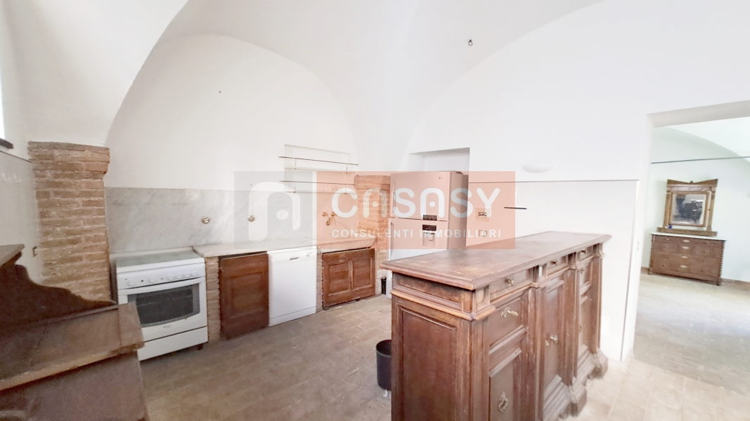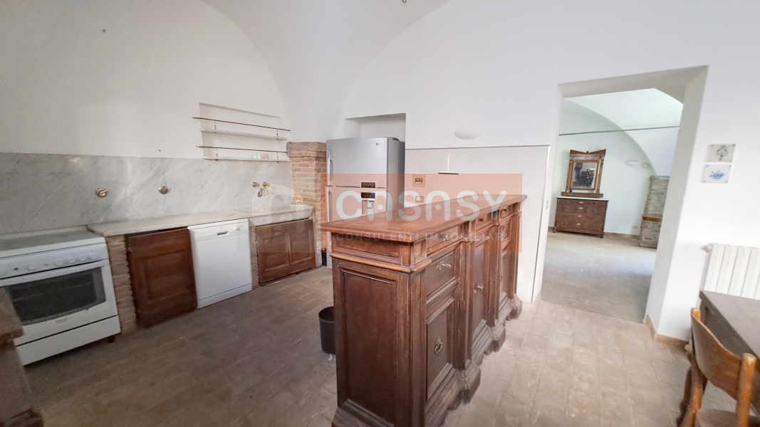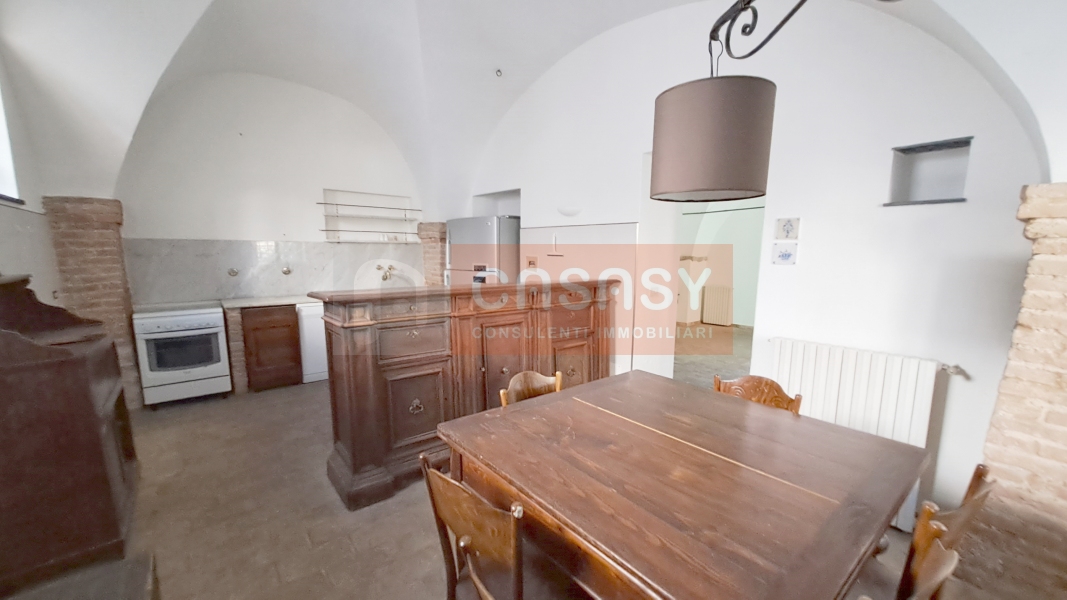 La proprietà si sviluppa su due piani e una superficie lorda di 220 mq è caratterizzata da alti soffitti a volta, pavimento in cotto anticato, camino con stufa a pellet, colonne e archi rifiniti con mattoni a vista che rendono l' immobile caldo e accogliente.